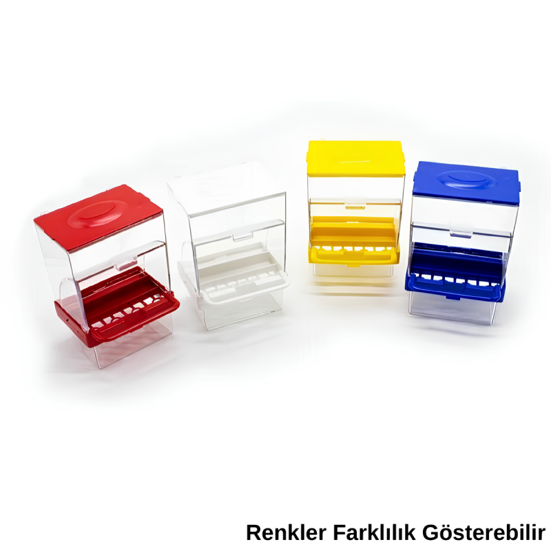 Askılı yapısı sayesinde kafes teline kolayca monte edilir ve sabit durur. Renkli kapak tasarımı ile hem işlevsel hem de estetik bir kullanım sunar.